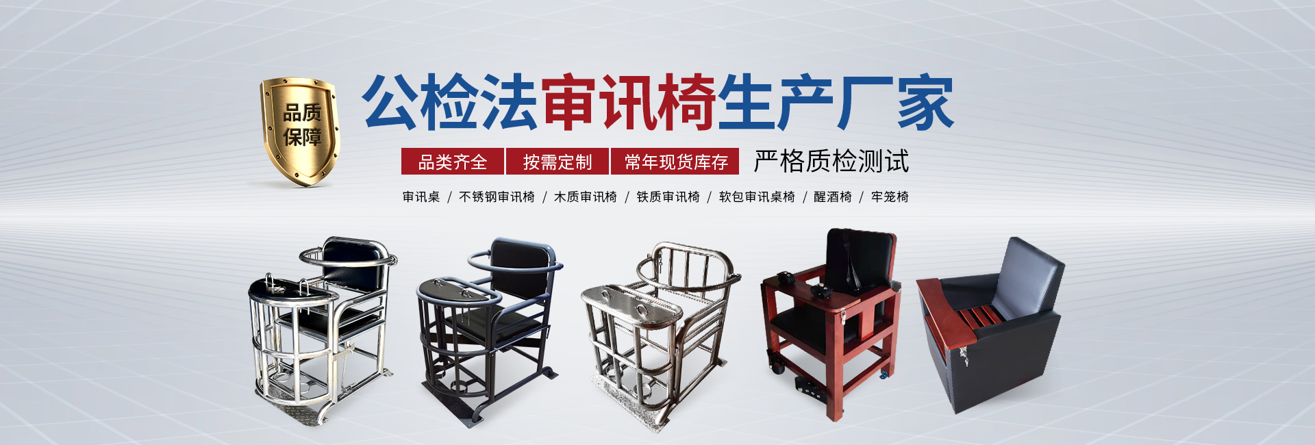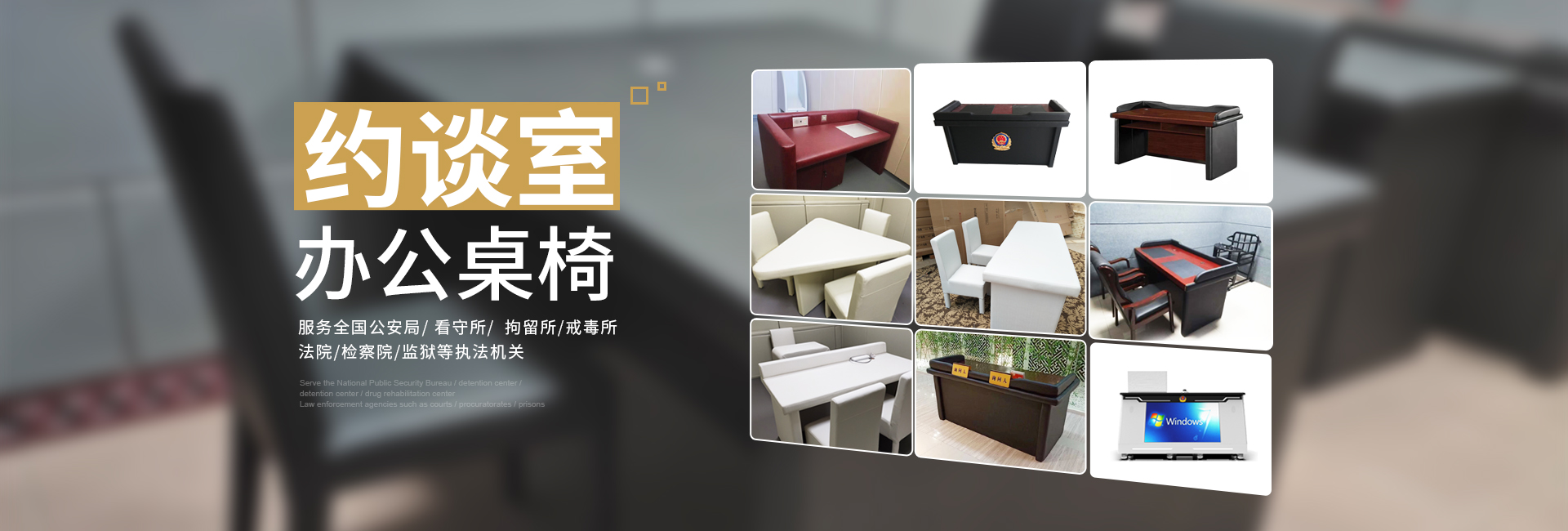 審訊室桌椅系列、 法院家具系列、 約談桌椅系列、 民用家具系列、 約束床、 操作臺、